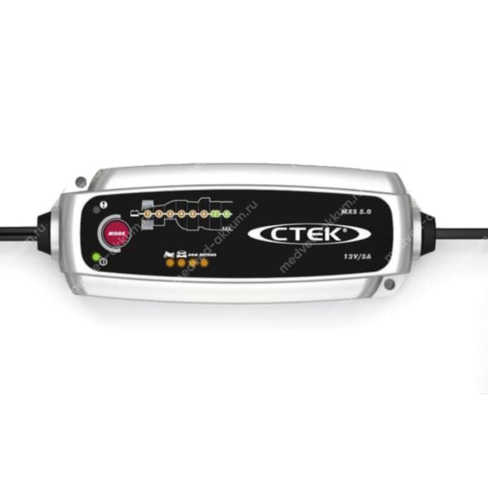 бновленное зарядное устройство CTEK MXS 5.0 с микропроцессорным управлением и встроенной автоматической температурной компенсацией, способно решать широкий спектр проблем, связанных с эксплуатацией и обслуживанием аккумуляторов различных транспортных средств и является отличным выбором для тех, кто предъявляет повышенные требования к оборудованию. MXS 5.0 обладает такими функциями, как диагностика аккумулятора, определяющая способность АКБ воспринимать и удерживать заряд, специальная функция устранения расслоения электролита, возвращающая работоспособность батареям после глубокой разрядки, уникальный профилактический режим, а также оптимизированный режим для зарядки АКБ при низких температурах и зарядки аккумуляторов с пористым сорбентом из стекловолокна (AGM), типа Optima. За процессом диагностики, зарядки и обслуживания батареи легко следить на светодиодном дисплее.
